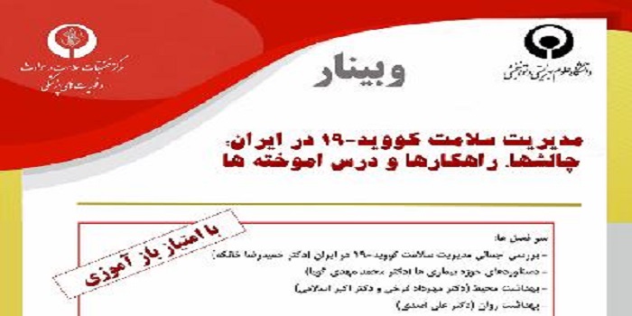 اولین وبینار تخصصی " مدیریت سلامت کووید ۱۹ در ایران: چالشها، راهکارها و درس آموخته ها " برگزار شد