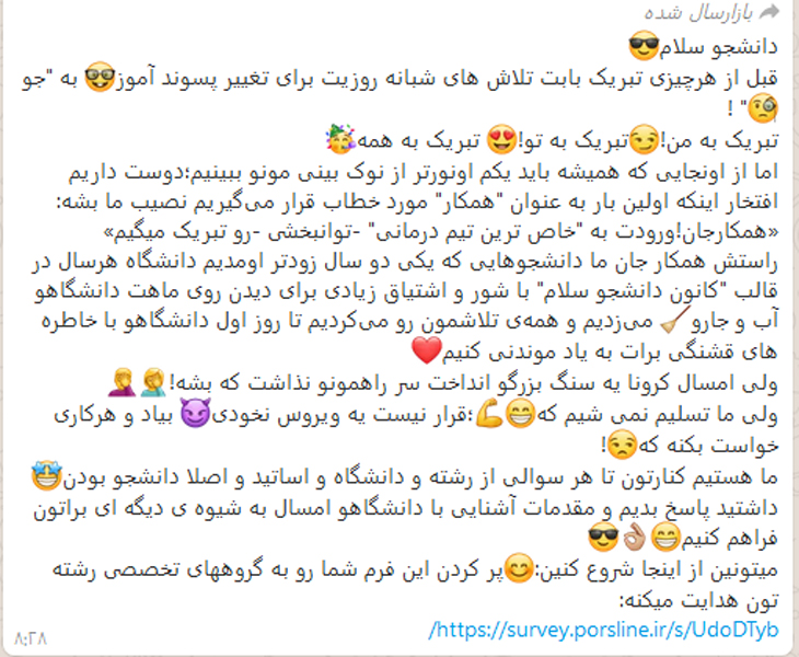 - دانشجویان گرامی کلاس های امروز دوشنبه 7 اسفند بصورت غیرحضوری برگزار می شود