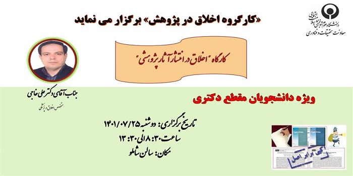 کارگاه آموزشی « اخلاق در انتشار آثار پژوهشی »، هفته آینده برگزار می شود