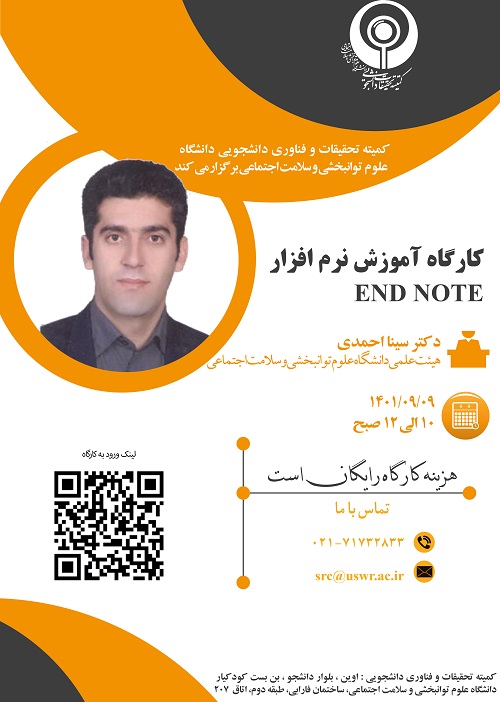 تاریخ برگزاری: 09/۰9/1401 ساعت برگزاری:۱۰ الی ۱۲ هزینه :رایگان مدرس: آقای دکتر سینا احمدی هیات علمی دانشگاه علوم توانبخشی و سلامت اجتماعی لینک ثبت نام: https://uswr.ac.ir/index.jsp?siteid=57&fkeyid=&siteid=57&fkeyid=&siteid=56&pageid=22389 لینک شرکت در وبینار: https://www.skyroom.online/ch/uswr/src (لطفا در روز برگزاری مورخ نهم آذر ماه راس ساعت ۱۰ با نام و نام خانوادگی وارد لینک شوید)