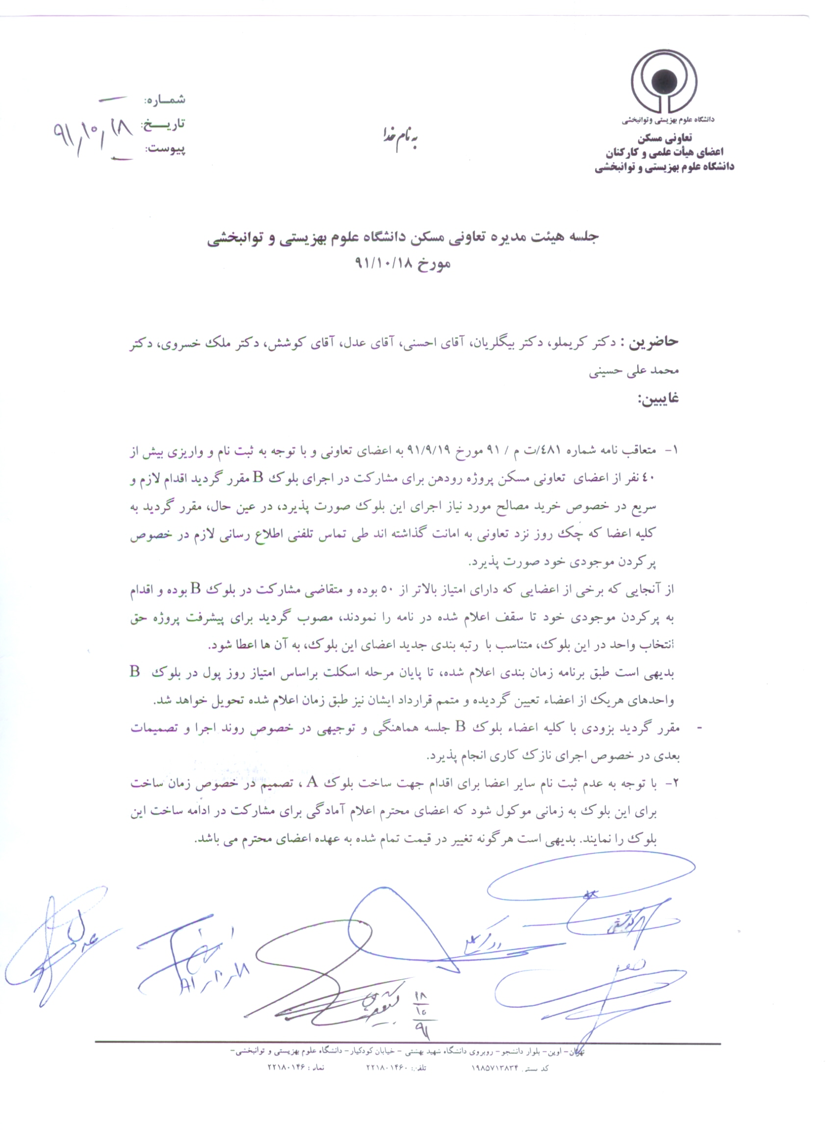 اخبار > صورت جلسه هیئت مدیره تعاونی مسکن