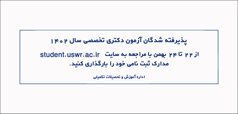 مرکز مطالعات و توسعه آموزش - اداره آموزش و تحصيلات تكميلي - مدیر آموزش و تحصیلات تکمیلیبرنامه ریزیچارت و رشته های دانشگاهسلامت در بلایاو فوریت هاکارشناسی ارشدامتحانات حق التدريس امور كلاس هاتقويم آموزشينیسمال اول سال تحصیلی 99-98نیمسال دوم سال تحصیلی 99-98نیمسال اول سال تحصیلی 400-99تقویم آموزشی نیمسال دوم 400-99تقویم اموزشی نیمسال اول 401-400تقویم اموزشی نیمسال دوم 402-401تقویم آموزشی نیمسال دوم 402-401تقویم آموزشی نیمسال دوم 403-402مصوبات شوراهای آموزشی و تحصیلات تکمیلیسرفصل رشته ها دکتری کارشناسی ارشدکارشناسیسرفصل رشته های وزرات علوم ، تحقیقات و فناوریتماس با ما معافیت تحصیلیشرایط پذیرش دانشجو1402اخبارفرآیند اداره آموزش و تحصیلات تکمیلیگروه های آموزشی - گروه آموزشی ارتوپدی فنیگروه آموزشی ارگونومی گروه آموزشی آمار زيستي و اپيدميولوژيگروه آموزشی پرستاریگروه آموزشي پيش دبستاني گروه آموزشی رفاه اجتماعیگروه آموزشی روانپزشکیگروه آموزشی روانشناسی کودکان استثنایی گروه آموزشی روانشناسی بالینی گروه آموزشی ژنتیک گروه آموزشی سالمنديگروه آموزشي شنوايي شناسيگروه آموزشی علوم بالینی گروه آموزشی علوم پايهگروه آموزشی فیزیوتراپیگروه آموزشی کاردرمانیگروه آموزشی گفتار درمانیگروه آموزشی مددکاری اجتماعیگروه آموزشی مدیریت توانبخشیگروه آموزشی مشاورهگروه آموزشي معارف اسلامي گروه آموزشی مدیریت سلامت، ایمنی و محیط زیستاداره امور هیات علمی - خانههیات جذبرزومه اعضای هیات علمیتماس با مامعاونت آموزشیسامانه نویدنظرات و انتقاداتاخباردبیرخانه تحول و نوآوری آموزشی - هیات ممیزه - |