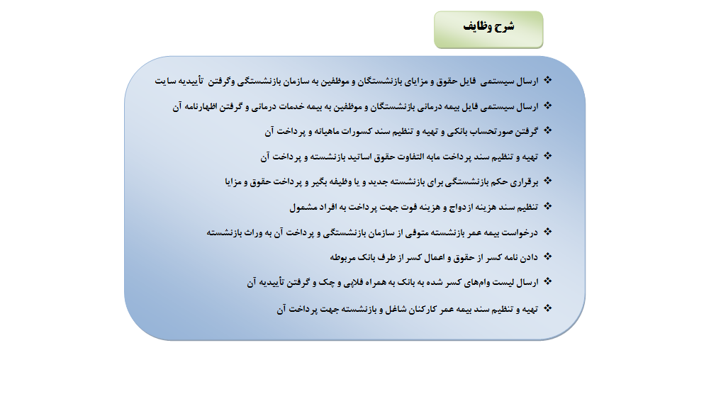شرح وظایف واحد بازنشستگی
